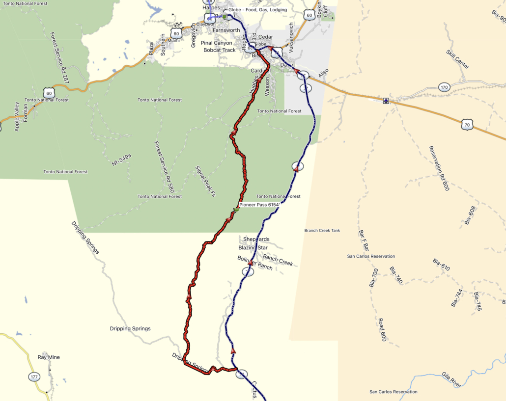Riders wishing to avoid the additional struggle can remain on the main route via HWY77 into Globe.