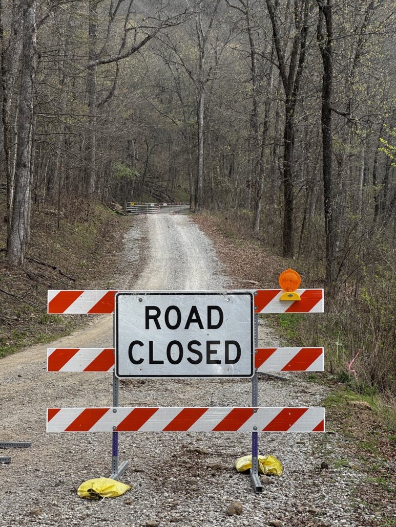 - Repair timeline on these roads are TBD fall 2026. Never go around gates or road closures.