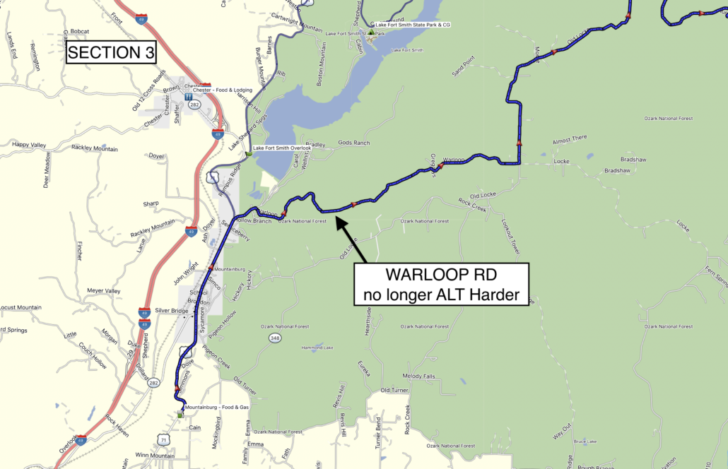 - The original intended ALT Harder for Warloop Road has been graded and is no longer considered ALT Harder. It has been integrated into the main route.