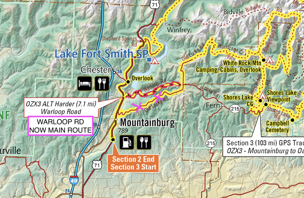 A few important updates have been made to the initial track release (BDRX-Ozarks-April2026). These changes are included in the current GPS tracks available for download, but they are not reflected on the printed map, as they were made after the map went to print.