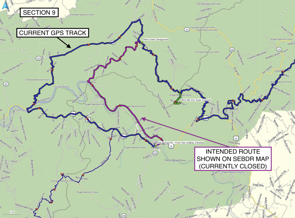 We have received reports of riders encountering closure signs through the Cherokee Nation on Section 7 near Maggie Valley, NC.