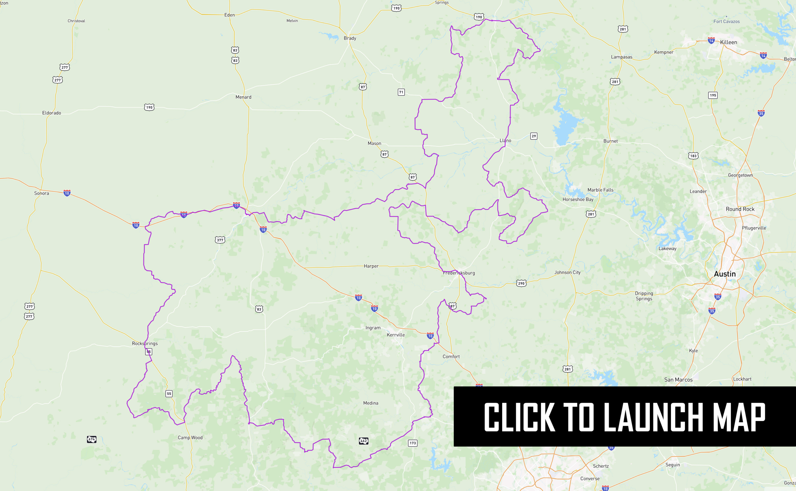 This route cannot be ridden without the use of GPS tracks. Be prepared and bring the official BDR Map AND your navigation device with the latest GPS tracks loaded. Free GPS tracks are available for download on this site. The route can also be navigated using a smartphone GPS navigation app like Gaia, OnX, Rever, and others. The Texas Hill Country BDR-X expedition documentary film is a great source of information about the route and is available for free on YouTube.com/ridebdr.